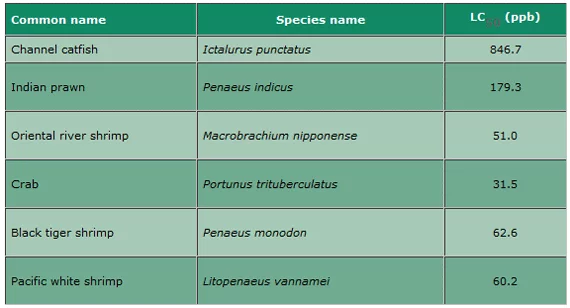 水中的氨存在兩種形式,即無毒的銨離子(NH 4 +)和作為未離子化的有毒氨(NH 3)。一個或另一個的相對比例取決于水溫和pH。如果浮游植物吸收太多CO 2白天,并且因此增加pH值至大于8.5的值時,魚蝦經(jīng)受取決于總氨氮濃度,高濃度的氨(NH 3)。游離氨(NH 3)少至0.6 ppm(mg / l)可能對許多魚類和蝦類產(chǎn)生毒性,引起鰓刺激和呼吸問題。